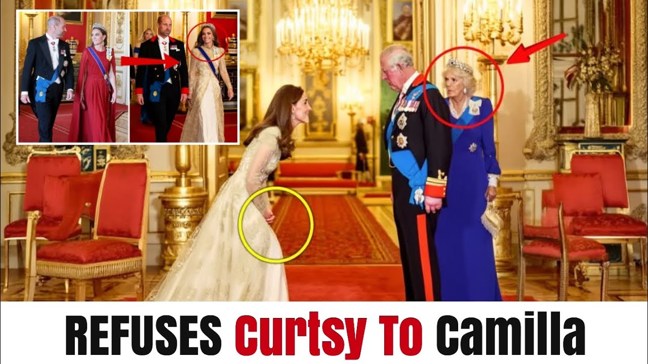 🚨 ROYAL REBELLION EXPOSED: Princess Catherine REFUSES to curtsy to Queen Camilla during Trump’s state visit—shocking snub or protocol slip? 😱👑 Camilla’s stunned response and hand gesture that “pulled rank” has the world buzzing… What hidden tensions boiled over at Windsor? The monarchy’s secrets unravel—click to uncover the drama! 👀🔍