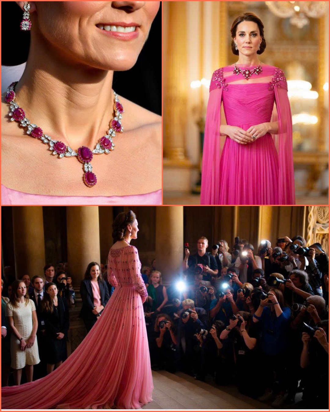 A ROYAL MOMENT THAT STOPPED TIME: Princess Catherine dazzled in a pink gown, adorned with Queen Elizabeth II’s never-before-worn Ruby & Diamond Floral Bandeau Necklace—leaving the court speechless and the internet ablaze. Was this Kate channeling the late Queen’s spirit, or a bold signal of her rising power? The sparkle says more than words ever could…