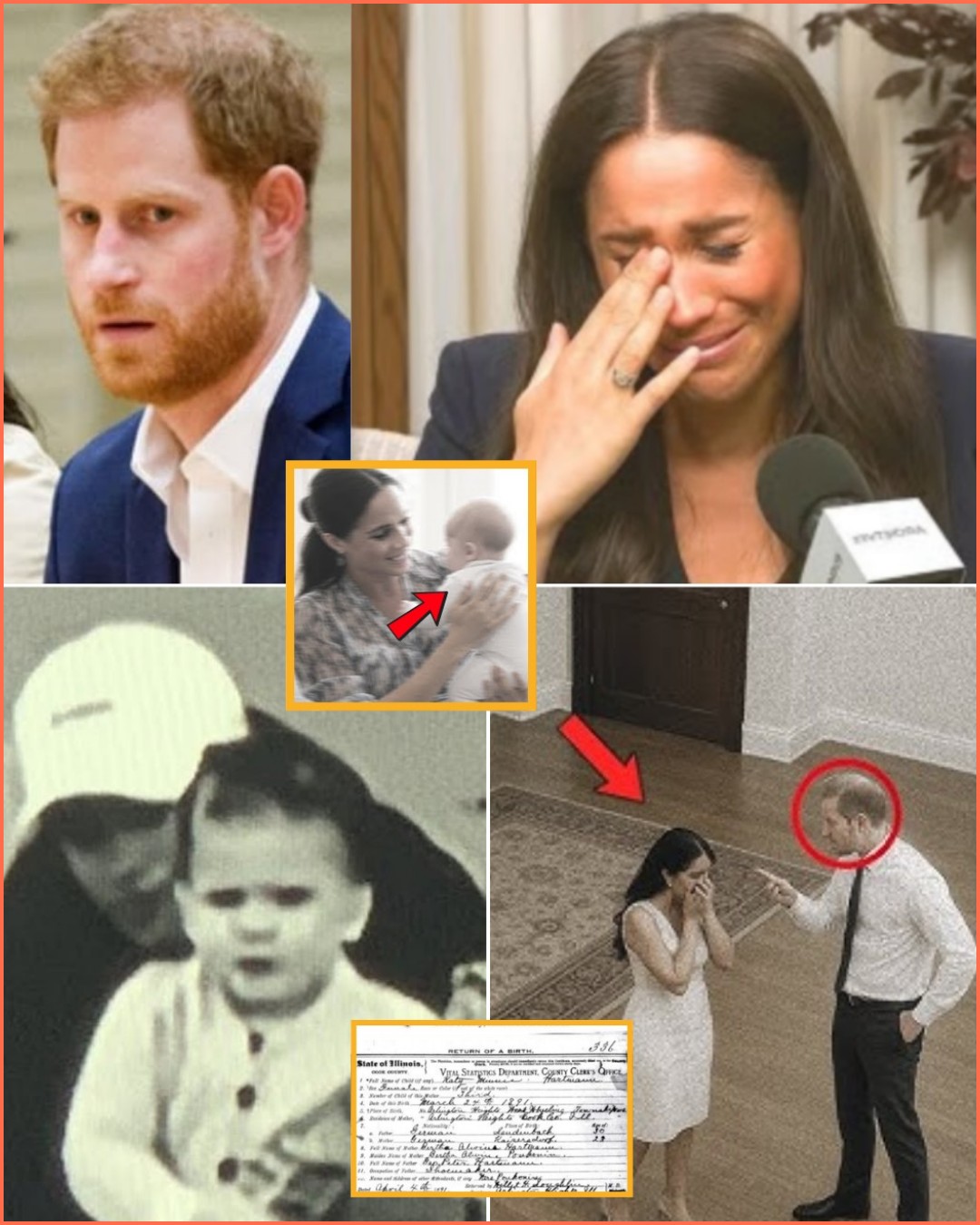 In a Montecito mansion meltdown that’s left palace watchers stunned and social media in overdrive, Prince Harry, 41, reportedly erupted in tears during a heated confrontation with his wife, Meghan Markle, over explosive leaked birth records from 1995 that allegedly point to a secret child from her acting days in Chicago. “How could you do this to me? You lied to me for years!” the duke screamed, according to shocked insiders who described him as “pale, shaking, and heartbroken” – a far cry from the united front the Sussexes have projected since their 2020 Megxit. One source close to the couple painted a devastating picture: “He looked like a man who just watched his world collapse,” adding that Meghan, 44, was left “speechless and cornered,” her usual composure shattered as the documents surfaced amid a fresh wave of royal scandals back home.
