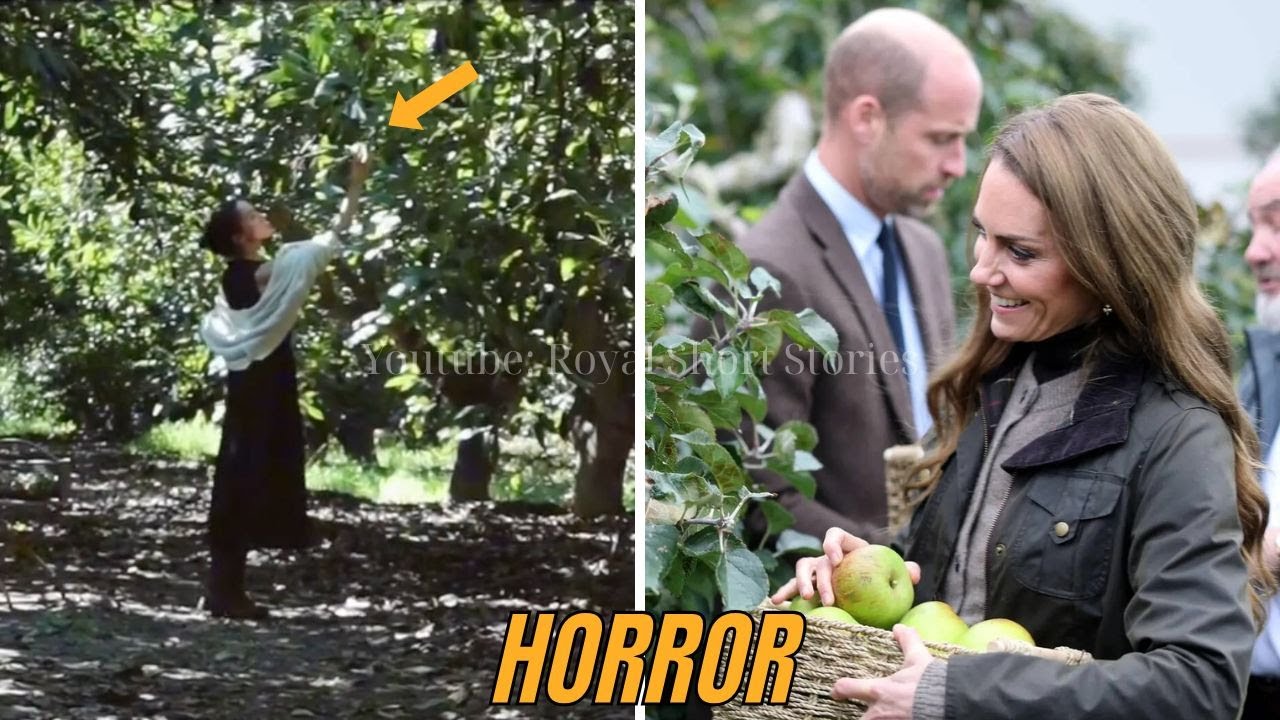 Yet, in the hyper-vigilant world of royal watchers, nothing is ever that straightforward. The video’s release – timed perilously close to the Waleses’ orchard triumph – ignited a firestorm of speculation. Tabloids and X threads quickly branded it a “horror video,” not for any literal scares, but for the perceived psychological undercurrents: Was this Meghan’s subtle shade, a pumpkin-patched parody of the cider farm’s apple-picking idyll? Critics pointed to the shadowy lighting in the montage – elongated shadows from the setting sun casting eerie silhouettes over the family’s faces – and Harry’s knife-wielding as “ominously staged,” evoking thriller tropes more than holiday cheer. One viral YouTube breakdown, titled “Meghan Markle Drops New HORROR Video After William & Catherine’s Viral Orchard Visit,” racked up 500,000 views overnight, dissecting frame-by-frame for “hidden messages” like the deliberate exclusion of Meghan’s face in key shots, fueling theories of her orchestrating a narrative from the wings.